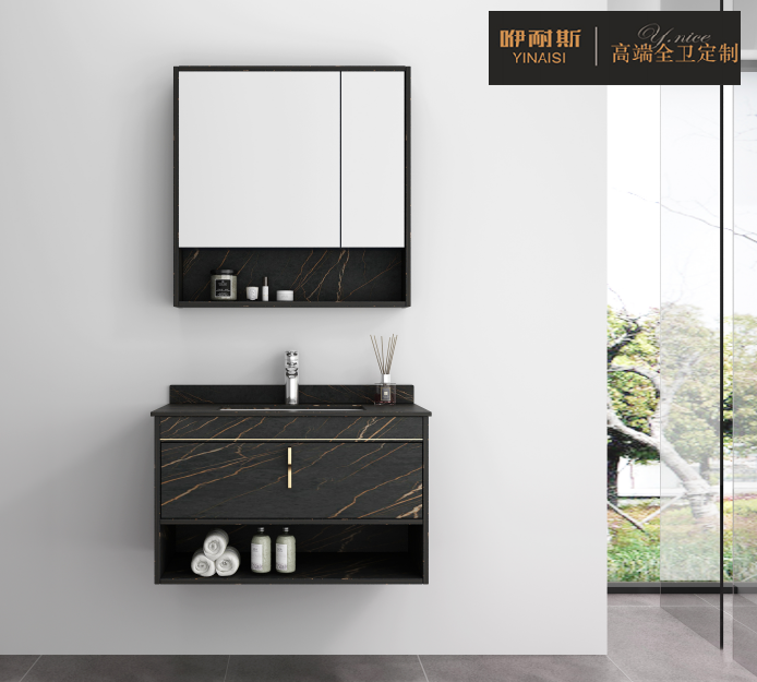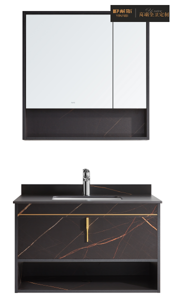 这一点,beat365中国官方网站卫浴柜厂家最新推出的酒店风浴室柜,就完全符合当下市场流行趋势及用户的审美需求。在颜色上,浴室柜主要采用了劳伦黑金经典色,黑金表层一体式的仿石纹理,将岩板的高冷和实木的温暖感完美结合,既时尚又大气,尽显都市气质。材质方面,则优选多层实木板为主材,加上面漆处理工艺,令产品不仅具有很好的耐腐蚀、耐刮磨、防火耐高温性能,且不吸污,易清洁,有脏污湿毛巾擦拭即可清理干净,非常便捷。