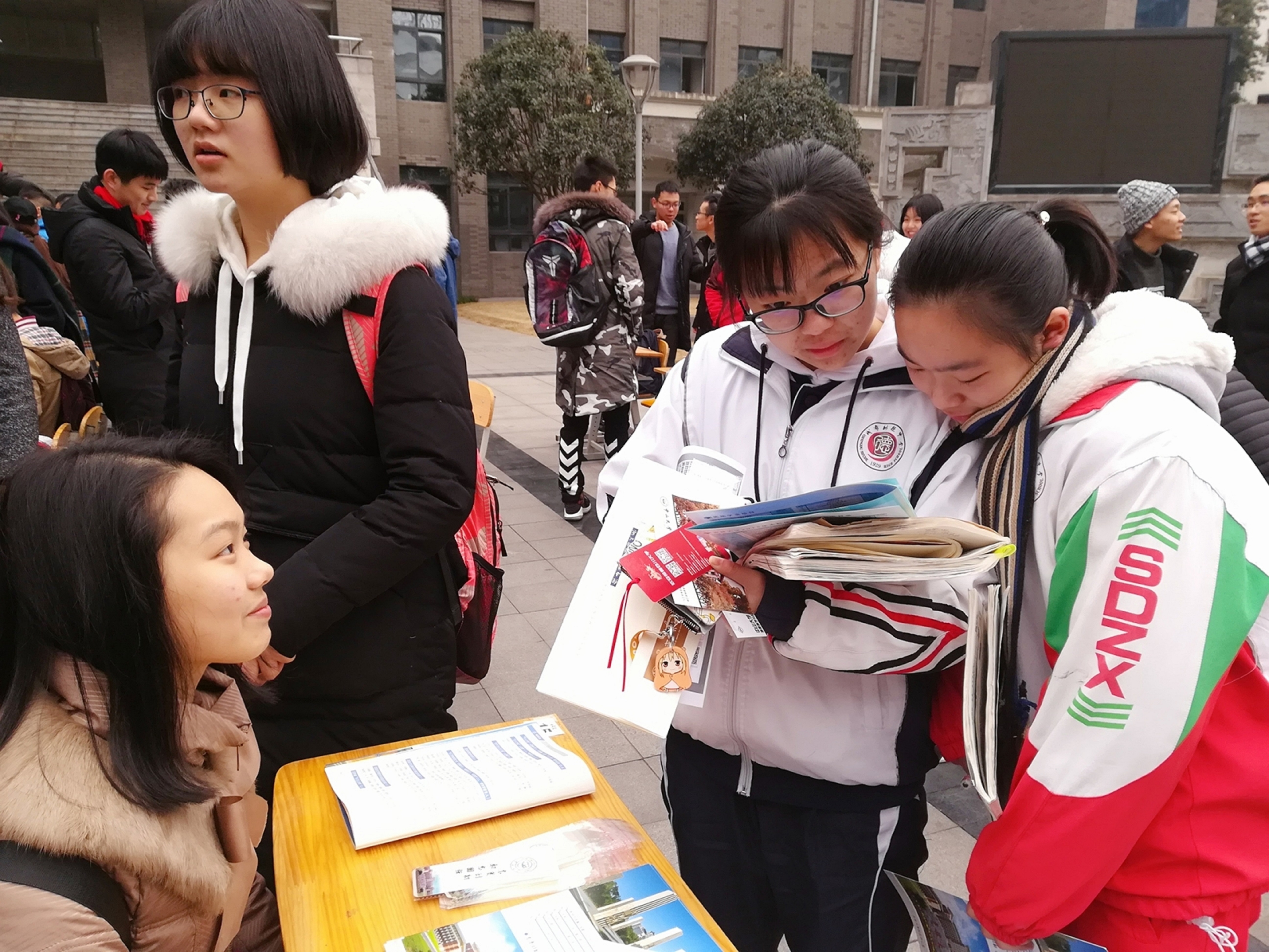 101706团支部在寒假期间分别派出10支队伍前往宝坻一中、湛江第一中学、武安市第一中学、吉林市第一中学、成都树德中学、陕西西安中学、正中实验中学、沈阳二十中学、长岭县第三中学、哈尔滨122中学。我们向同学们展示了我校的历史文化底蕴,以及现在学校的发展。带同学观赏了校园美景,分别介绍了我校藏书丰富的图书馆、各式各样的国际交流、学术竞技;学习之余丰富多彩的社团活动。对学院进行进一步的讲解,让同学们明白数学的魅力。我们还讲了自己关于高三的经验。希望他们可以放松心态,考出最好的成绩。