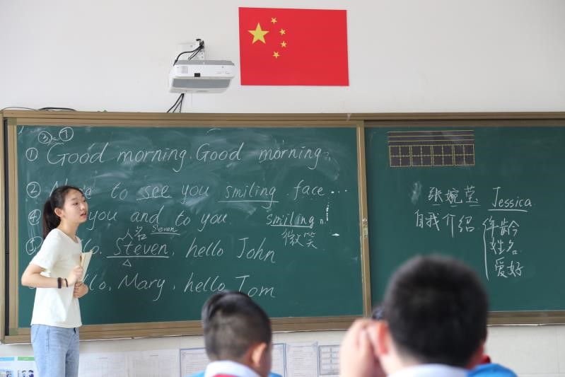 次日早上七点,在当地学校领导老师的热烈欢迎和积极配合下,小“数”林支教团成功开幕。营城子中心校校长在开幕式发言时表示,希望这次为时一周的教学活动能给他们带来新的教学理念和方法,丰富孩子们的假期生活,激发孩子们的兴趣,在某些方面起到一个启蒙的作用,同时也希望大学生们在本次实践活动中有所收获,大手拉小手,共谱芳华。首先,支教队员帮助小朋友们系上红领巾,然后全体师生一起进行了升旗仪式。小朋友们站得整整齐齐,个个精神饱满,就像一棵棵小树苗。五星红旗冉冉升起,小树苗们会在这初升的太阳下慢慢茁壮成长。 支教队员为同学们带了一些小礼物,同学们开心地收下了崭新的小书包,文具盒和水杯。第一节是数学课,支教队员们准备了数学大闯关游戏,小朋友们积极抢答,课堂气氛十分活跃。尤其是判断题,同学们几乎全部站了起来同时喊出自己的答案。除了他们已经学过的知识,队员会在每道题之后拓展一些高年级知识,用生动形象的类比启发小朋友们的思维。历史课上,支教队员首先跟同学们讲了自己和历史的小故事以及对于历史的理解,告诉同学们学习历史的重要性。然后简要介绍了中华,上下五千年的发展历程,再根据同学们有所了解的东西进行讨论,对同学们想要了解的历史相关问题作出解答。希望通过这样的几节课能让同学们对历史有兴趣,在未来学习历史的时候一直有热情。接下来是美术课,队员准备了几个简单易学又受小朋友们欢迎的素材,同学们领完水彩笔和其他绘图工具之后认认真真地跟着老师画,一边画一边跟周围的小朋友讨论,给自己的作品构想了小故事。小朋友们都心灵手巧,又特别活跃,纷纷抢着展示自己的作品,还有小朋友将自己的作品送给支教队员留作纪念,非常可爱。最受小朋友欢迎的是音乐课,支教队员选了一些现在小学生中流行的歌曲,还有小朋友提出来想学的歌,课堂气氛相当活跃又不失秩序。经过了午休,下午第一节是地理课,队员们先请小朋友分享了自己的一些有关地理知识的认知和经历,然后简单介绍了几个省份的美丽景色和人文历史。小朋友们兴趣广泛,都积极回答老师提出的问题并且答案是正确的。支教队员还准备了几个国家的国旗和简单有趣的地理知识,最后收集了同学们想了解的东西以便下节课与同学们分享。接下来是英语课,支教队员先带着同学们认识了几个新单词,然后教同学们一首轻快的英文歌,小朋友学得非常快。英语老师温柔的声音和轻快的语调让同学们特别投入,当地校领导也对这堂课印象极好。