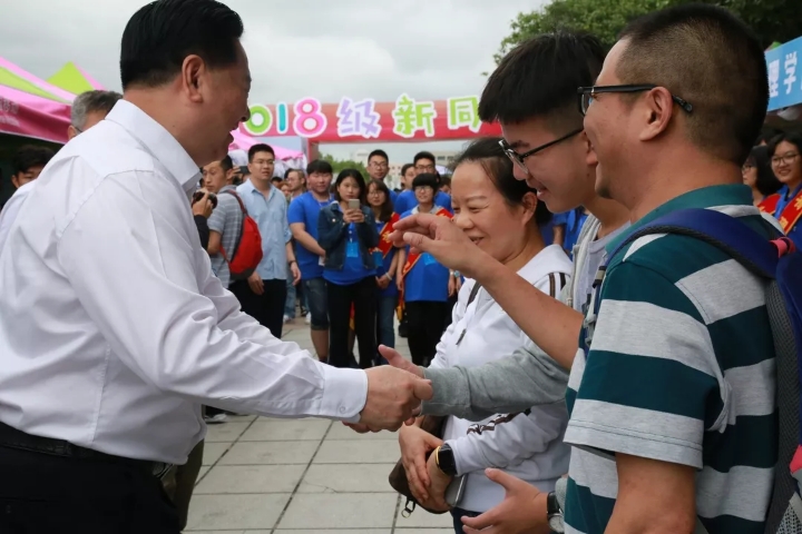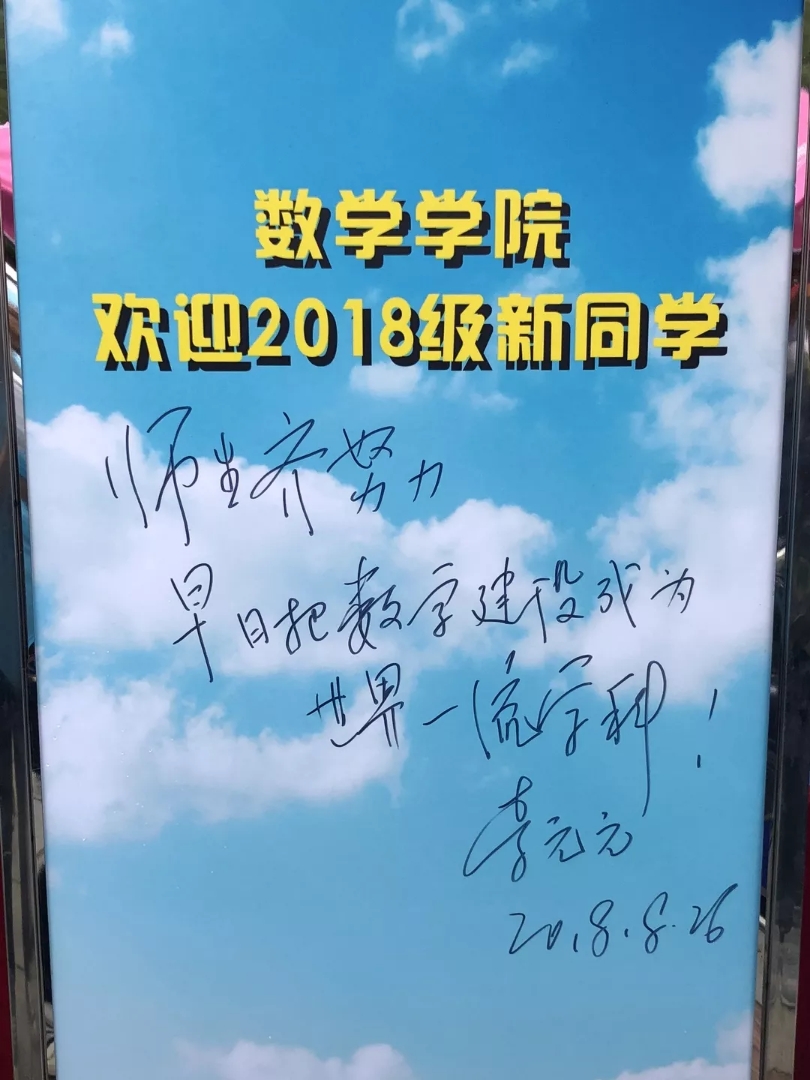 26日上午,李元元校长及学校领导莅临现场,指导迎新工作。李元元校长表达了对数学学院的厚望,希望同学们可以好好学习,重振数学往日辉煌。师生齐努力,早日把数学建设成世界一流学科!
