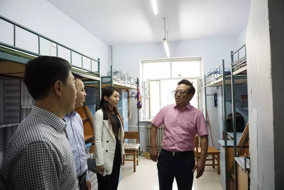 8月26日下午,数学学院领导和老师们分别来到大学城2公寓和3公寓看望新生。此次出席的领导和老师是有院长李辉来老师,党委书记李晓光老师,副院长史少云老师,党委副书记兼纪委书记王欢老师,副院长陈续升老师,党委副书记兼副院长范庆文老师,新生辅导员曹馨月老师。