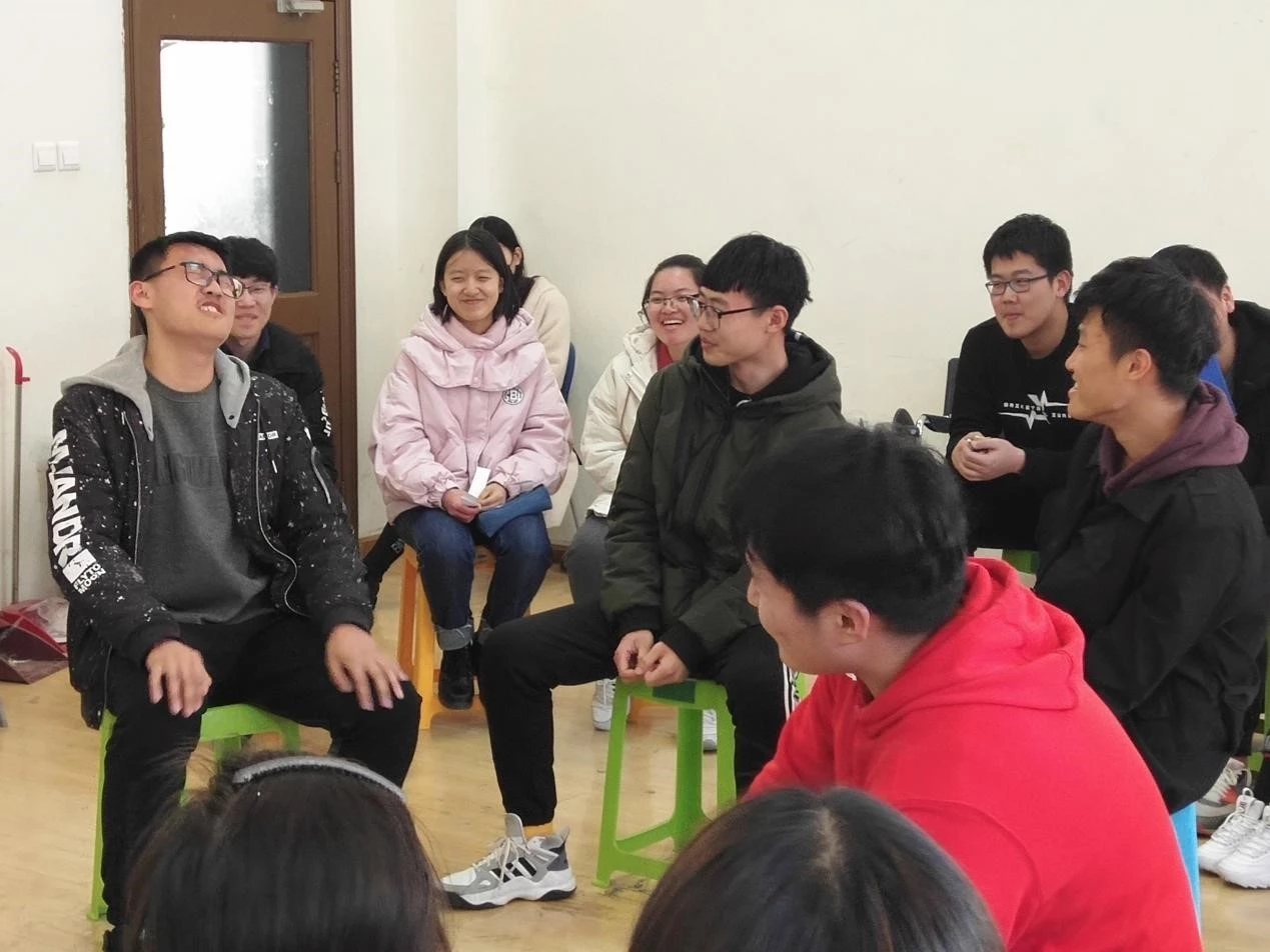数学学院101802班于4月1日晚上开展了本次心理班会。新同学的自我介绍让大家更加了解他们。随后,主持人把所有人分成四组,让大家互相了解并放松自己。同学们用表情动作表演了各种表情包,生动形象,将活动气氛推向高潮。欢声笑语中,大家放下心中顾虑,开始勇敢表达自己。在写下近期烦恼和困惑后,同学们用情景剧的方式表达了不同的问题。他们都是在一次次打击后仍不放弃的勇敢少年。