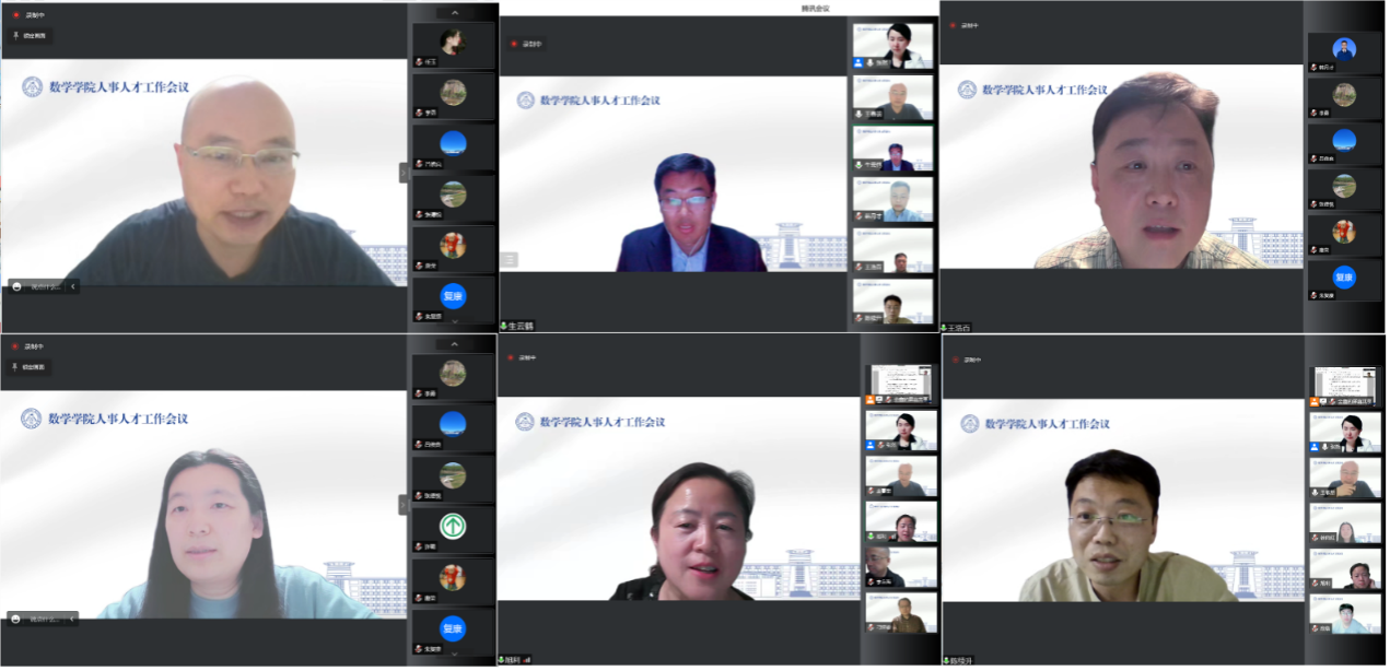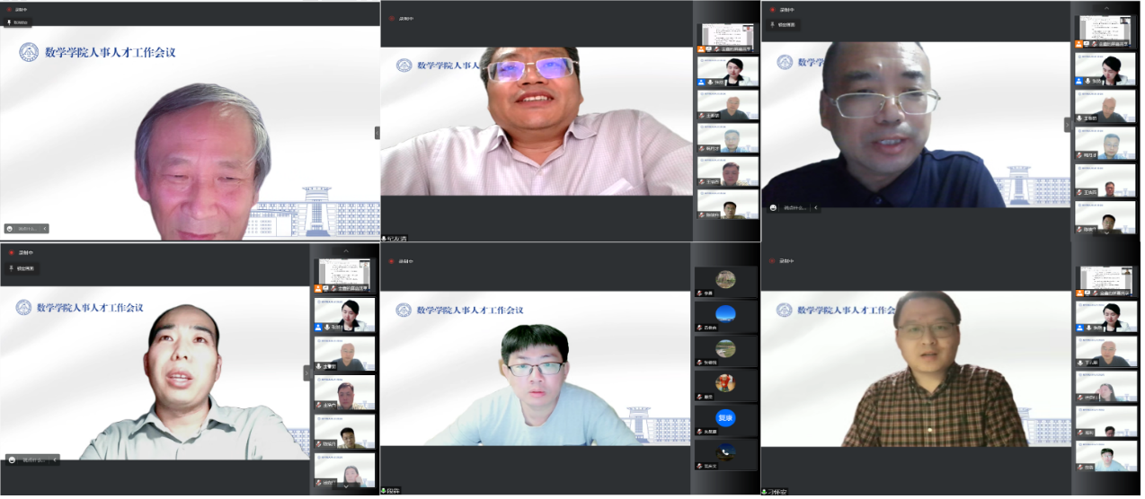 今年是习近平总书记对黄大年同志先进事迹作出重要指示五周年,为进一步学习黄大年同志心有大我、至诚报国的爱国情怀和甘于奉献的高尚情操,深入贯彻落实学校人事人才工作会议精神及姜治莹书记、张希校长的讲话要求,强化学院人才队伍建设,数学学院于2022年5月30日召开人事人才工作会议。学院党政领导班子成员、党委委员、学术委员会主任、教学委员会主任、学位评定分委员会主任、学院高层次人才、唐敖庆学者、各系主任及近五年入职教师参加了会议。会议由副院长王春朋主持。