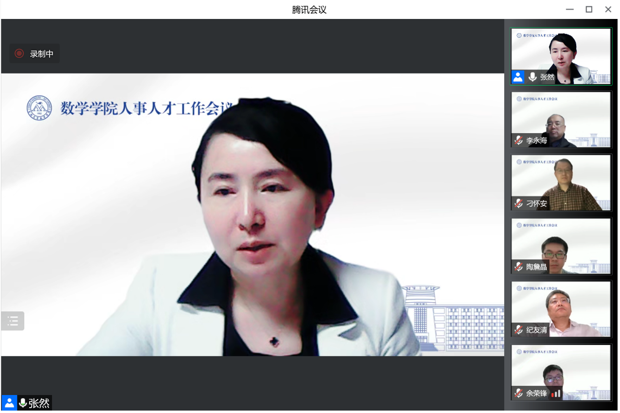 最后,张然院长就各位老师提出的建议与意见进行了回应,并向为学院事业发展和人才队伍建设作出贡献的老师们表示感谢。她指出,本次人才工作会议恰逢其时,通过群策群力、建言献策,对全院统一思想、凝聚共识、总结经验、强化措施起到重要作用,必将有力推动学院人才工作。她强调,学院在人才工作方面虽取得了一些成绩,但仍然存在着领军人才不足、待遇不够高、对外交流联系不足等问题。要深入思考和探索未来的发展道路,全方位培养、引进和用好人才,真正实现“请天下人才而成就之”。人才队伍是学院事业发展的核心要素和关键力量,要全力以赴支撑一流学科建设,汇聚推进学院事业发展的强大合力;充分用好优质本研学生资源,加强学生培养,让拔尖创新人才不断涌现;以国家天元数学东北中心、吉林国家应用数学中心、中俄数学中心A类基地等国际化平台为支撑,形成平台建设、学科发展、个人提升互促共进、联动发展新格局;以学院70周年院庆为契机,盘活校友资源,推进引才引智,完善人才引进工作长效机制;要坚持教学相长、因材施教,为党育人、为国育才,在加快教育强国和人才强国建设中展现更大的担当和作为,为凝心聚力推进新一轮“双一流”建设贡献更多的智慧和力量。