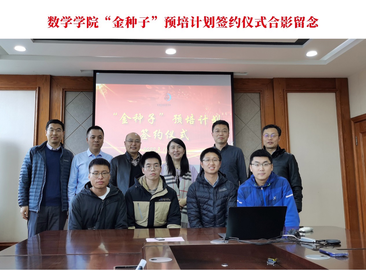 2022年11月18日,数学学院第一届“金种子”预培人选签约仪式在数学楼三楼会议室举行。数学学院党委书记王春朋、院长张然、培养教师李勇教授、生云鹤教授、张凯教授、“金种子”预培计划候选人及学院班子成员参加了本次会议,会议由王春朋书记主持。