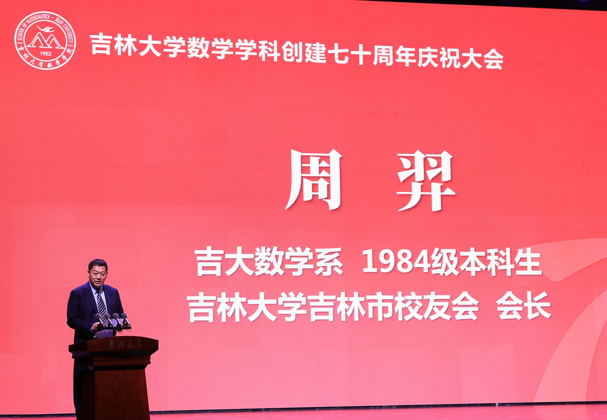 方复全,戴永久,吉大数学系1984级本科生、吉林大学吉林市校友会会长、吉林长荣农副产品有限公司董事长周羿作为校友代表发言时回忆了在吉大求学难忘瞬间,深情表达了对母校和恩师的感激之情。他们衷心祝愿吉大数学发展越来越好,培养出更多优秀人才,也将尽己所能为母校的发展贡献力量。