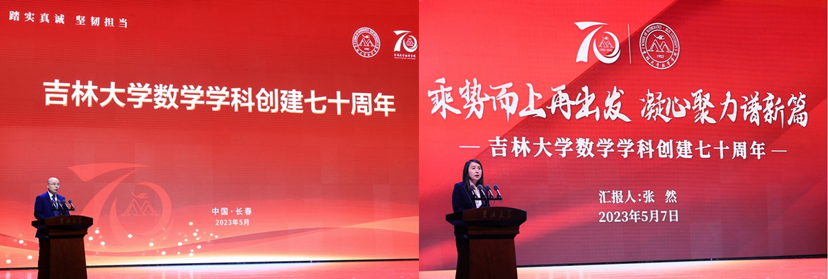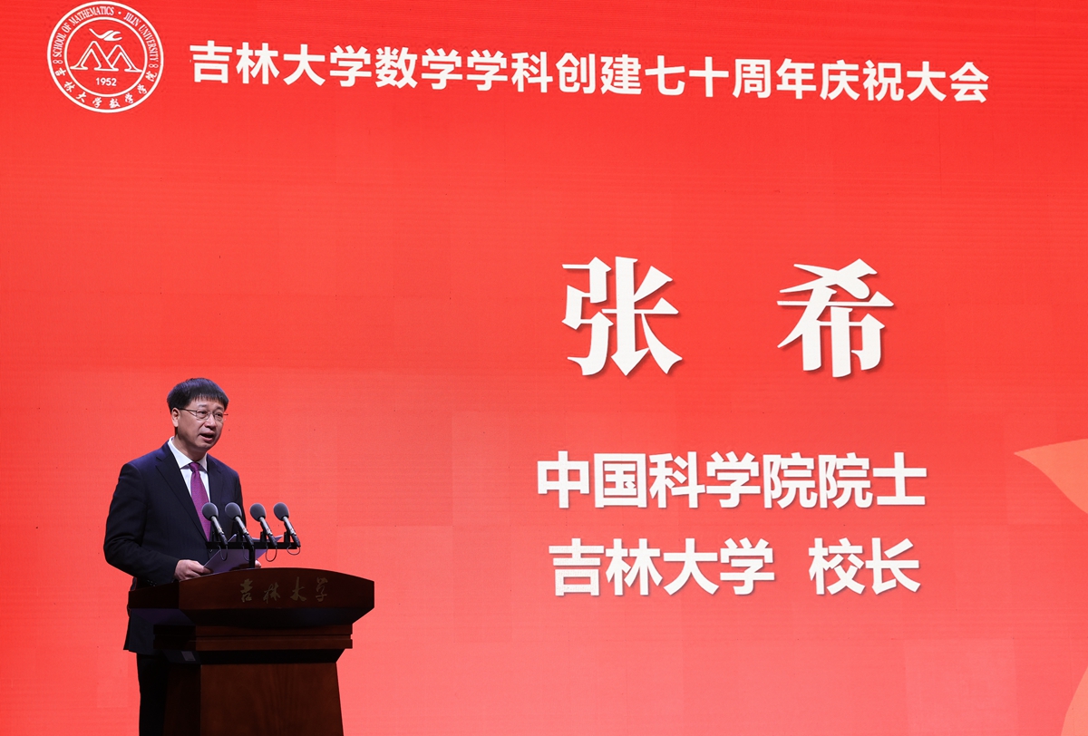 张希在致辞中表示,上世纪50年代初期,王湘浩、江泽坚、徐利治、谢邦杰、王柔怀、孙以丰等前辈先贤,响应国家号召,一路北上,组建吉林大学数学系,奠定了吉大数学学科的坚实基础,为国家建设的各个领域输送优秀人才,使吉大数学成为中国数学人才培养和科学研究的重要基地之一。建系初期编写的多部教材成为上个世纪60年代全国高校的通用教材,培养和影响了几代学人,对中国高等教育的发展产生了深远影响。作为吉林大学最早建立的基础学科之一,数学学科在国家历次重大学科战略布局中,均在首批之列。张希指出,70年来,吉大数学学科既面向数学前沿,求真求美,又聚焦国家战略需求,主动搭建高水平创新平台,承担重大科研任务,取得了多项重要科研成果。众多吉大数学学子在各自岗位上坚守奉献,为祖国的各项事业作出了重要贡献。张希强调,严谨务实、锐意创新、敢于人先是吉大数学人鲜明的特色。希望数学学科赓续传统,不断提高公共教学水平,为校内各相关专业的人才培养打下坚实的数理基础。以“数学+”为载体,与校内各专业领域开展科研合作,切实发挥数学对其他基础学科以及应用学科的支撑作用。同时,希望数学学科继续以一流学科建设为核心,进一步加强基础学科人才培养,提升原始创新能力,努力发挥国家天元数学东北中心、吉林国家应用数学中心等国家级平台的支撑作用,早日建成国家和区域重要的数学学科人才中心和创新高地。