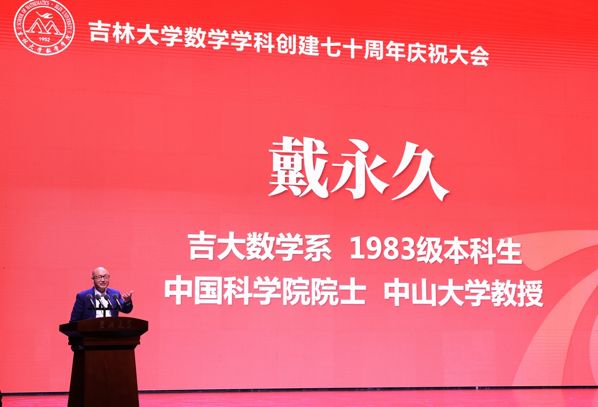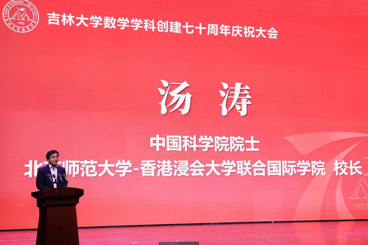 汤涛在致辞中表示,吉大数学学科有着辉煌的历史,学科创始人和先驱们更是中国数学界杰出的领军人物。几十年来,吉林大学数学学科桃李天下,为我国培养出大量数学学科人才,这得益于吉大数学学科前辈创造的人才培养模式。如今,吉大数学学科已经进入快速发展时期,学科建设成绩斐然,人才培养成就显著,科研成果不断攀升,推动了整个东北地区乃至全国的数学发展。他祝愿吉大数学青春常在,不断前进,为我国数学领域的基础研究、人才培养、应用推广提供更多新动力。