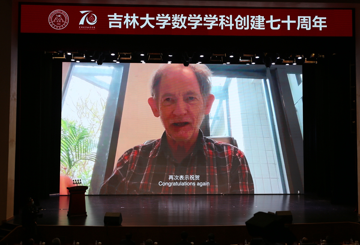 会上,国际合作伙伴代表英国牛津大学John Ball爵士通过视频方式,向吉林大学数学学科创建70年表达祝福。