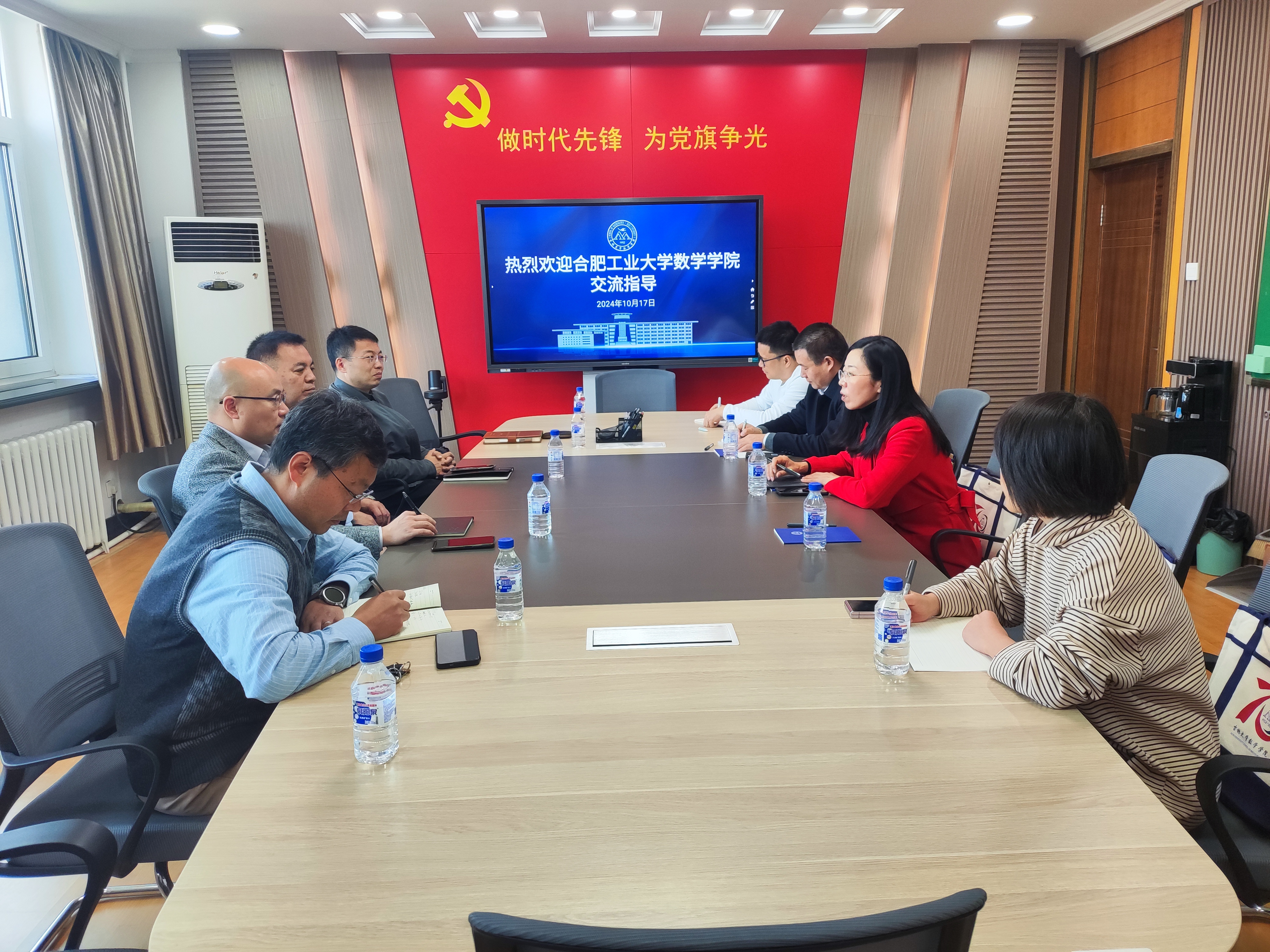 1017日上午,合肥工业大学数学学院来我院进行交流座谈。双方重点就人才引进、国家一流课程建设、高层次平台及重点重大科研项目的申报、拔尖学生发掘与培养等相关学科建设内容进行交流探讨。