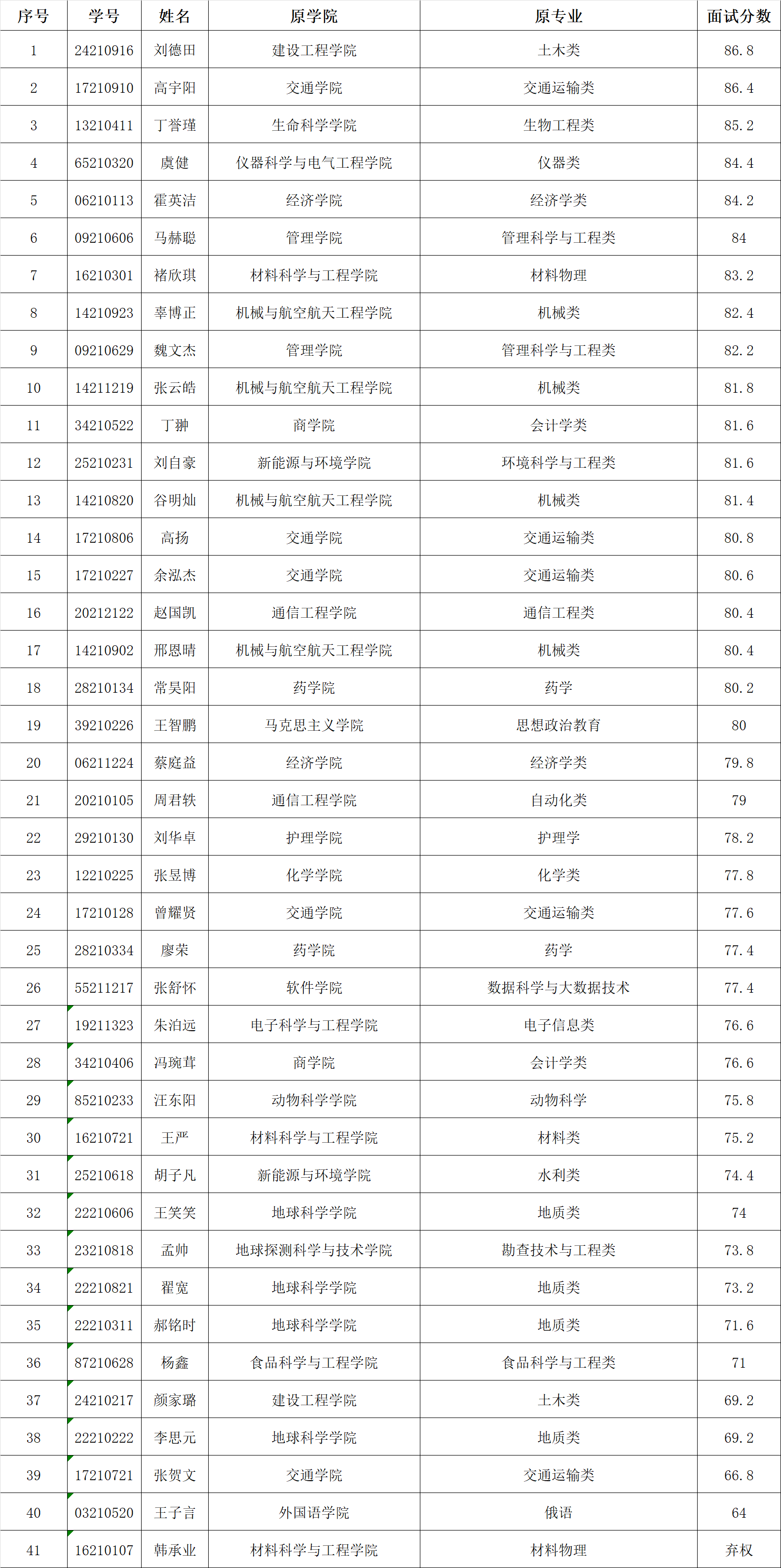 关于数学学院2021级本科生转专业复试结果公示的通知