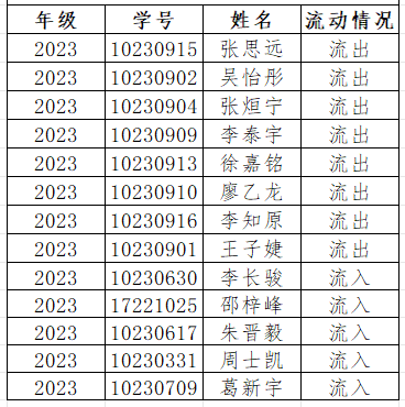根据《数学学院强基计划流动方案暂行方法》,经学生个人申请、学院选拔小组评定,拟录取2022级5名同学、2023级5名同学进入数学学院强基班学习,现予以公示。