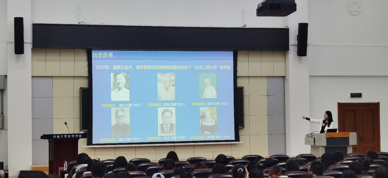 第二项内容,张然教授向同学们讲述了吉林大学数学学科近70年的奋斗历程,从先辈们创系兴学到扎实的教学传统,从潜心科研到人才培养,从“十四五规划”到一流学科建设,生动地诠释了“踏实肯干、求真务实、无私奉献”的吉大数学精神。