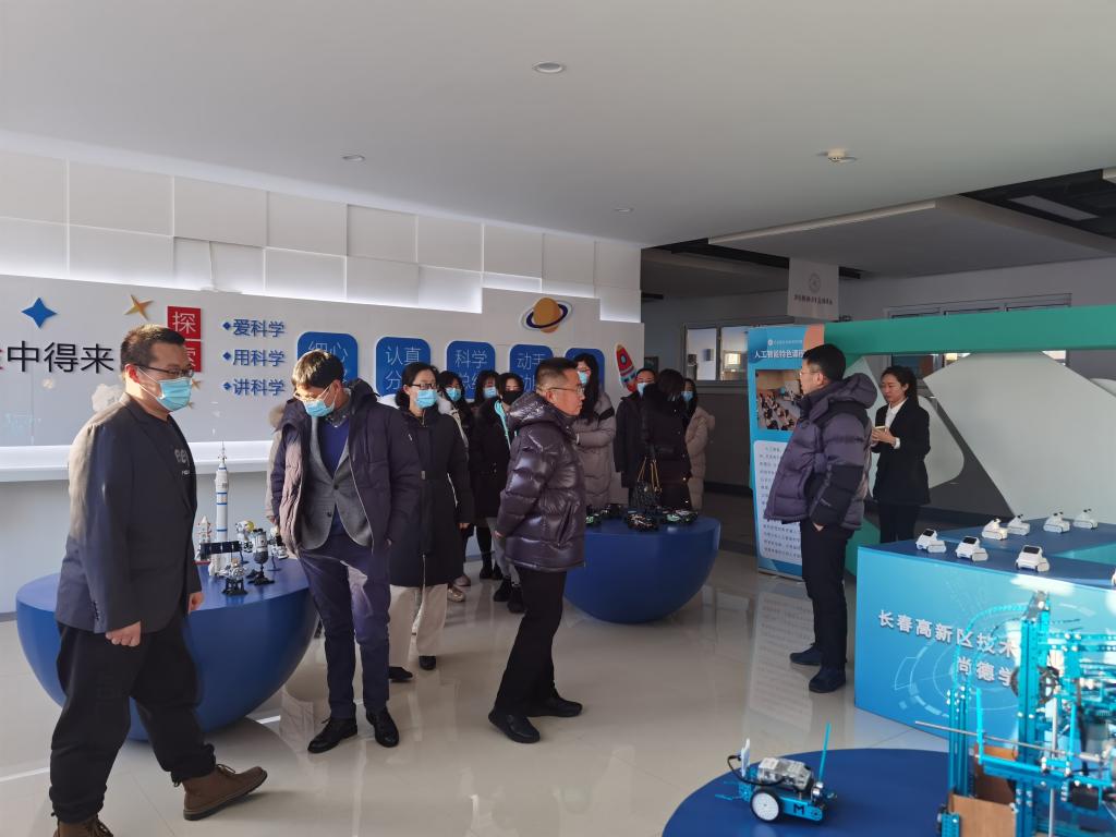 在王恒校长的带领下,我院师生参观了吉大尚德学校的地板冰壶教室、仿真冰教室及冰雪文化长廊等,了解了学校的冰雪特色课程。通过参观“馆校共建科技体验区”,前来参观的老师同学们都对尚德学校的校园环境、特色课程、创新教学等方面赞叹不已。
