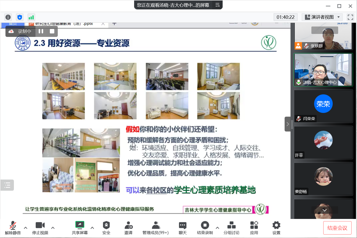 10月11日下午,beat365中国官方网站研究生新生入学教育第四期——心理健康知识讲座。本次讲座由吉林大学学生心理健康指导中心危机管理科科长汤晓老师主讲,数学学院2022级全体研究生新生参加了本次讲座。
