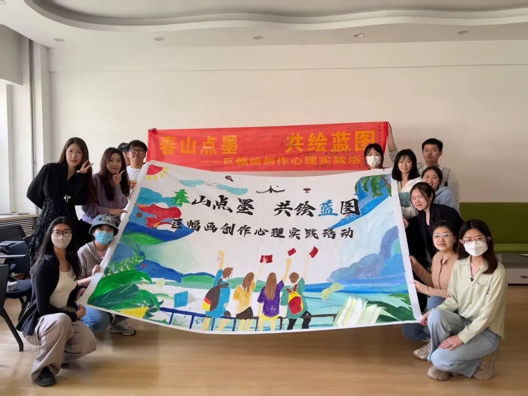 为了缓解同学们来自学业、生活、工作等各方面的压力,文学院暨新闻与传播学院联合数学学院于5月11日举办“春山点墨 共绘蓝图”巨幅画创作心理实践活动,以“梦想”“合作”为主题,情感积极向上,给同学们提供一个合作互助、解压娱乐、放飞梦想的空间,在繁忙的学习和生活中得到短暂的放松,找寻到情感的寄托和心灵的归宿,从而更能感受到吉林大学温暖和谐温馨的校园氛围。
