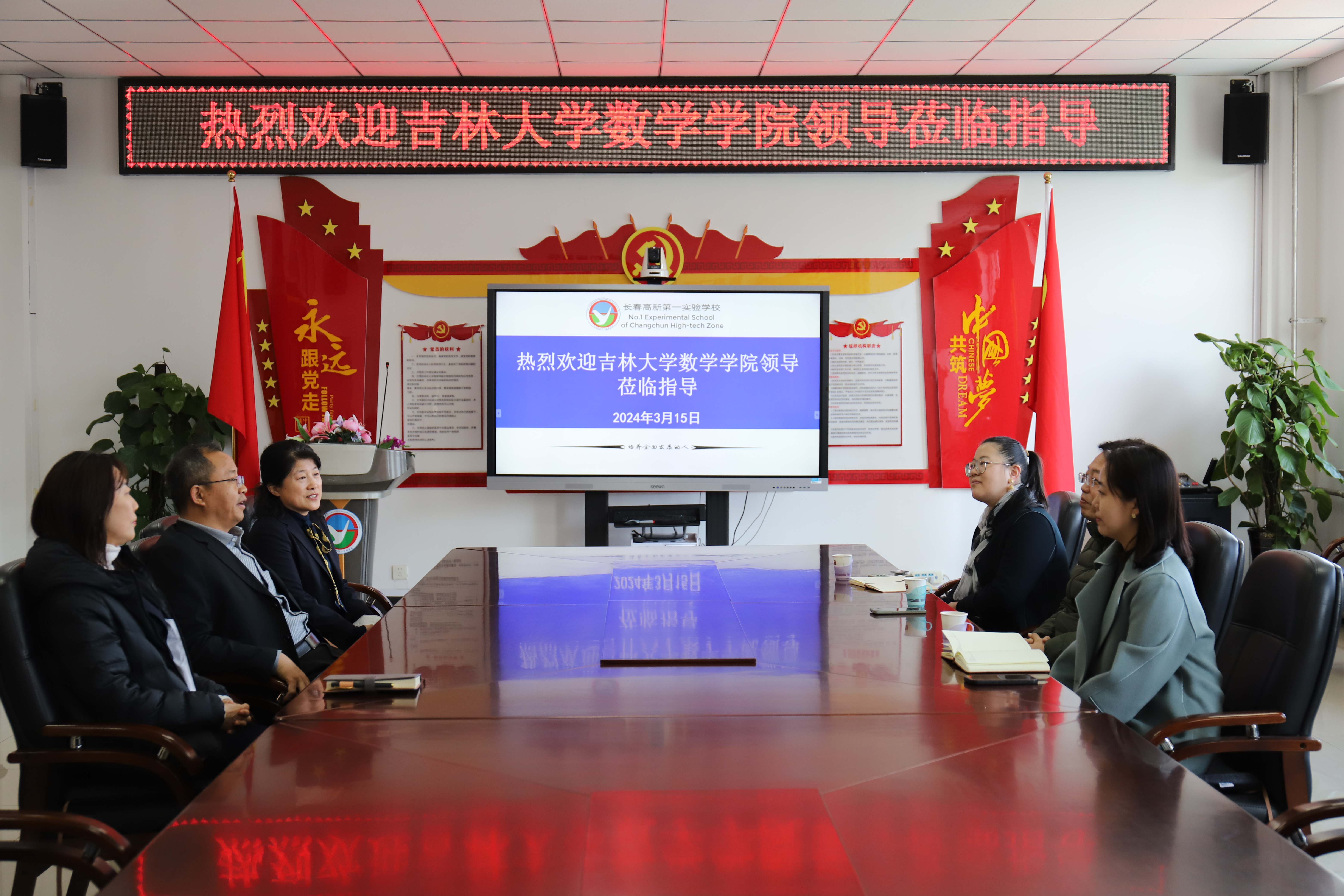 数学学院党委副书记陈续升、研究生辅导员张轶群、学生代表吴文姝于2024年3月15日走访了长春高新第一实验学校,与校方就学生实习实训基地建设进行座谈。双方就学生实习安排、实习内容及实习期间的人身安全等具体问题进行了商榷。