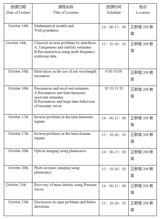课程题目:Mathematics of Imaging Modalities Using Resonant Contrast Agents