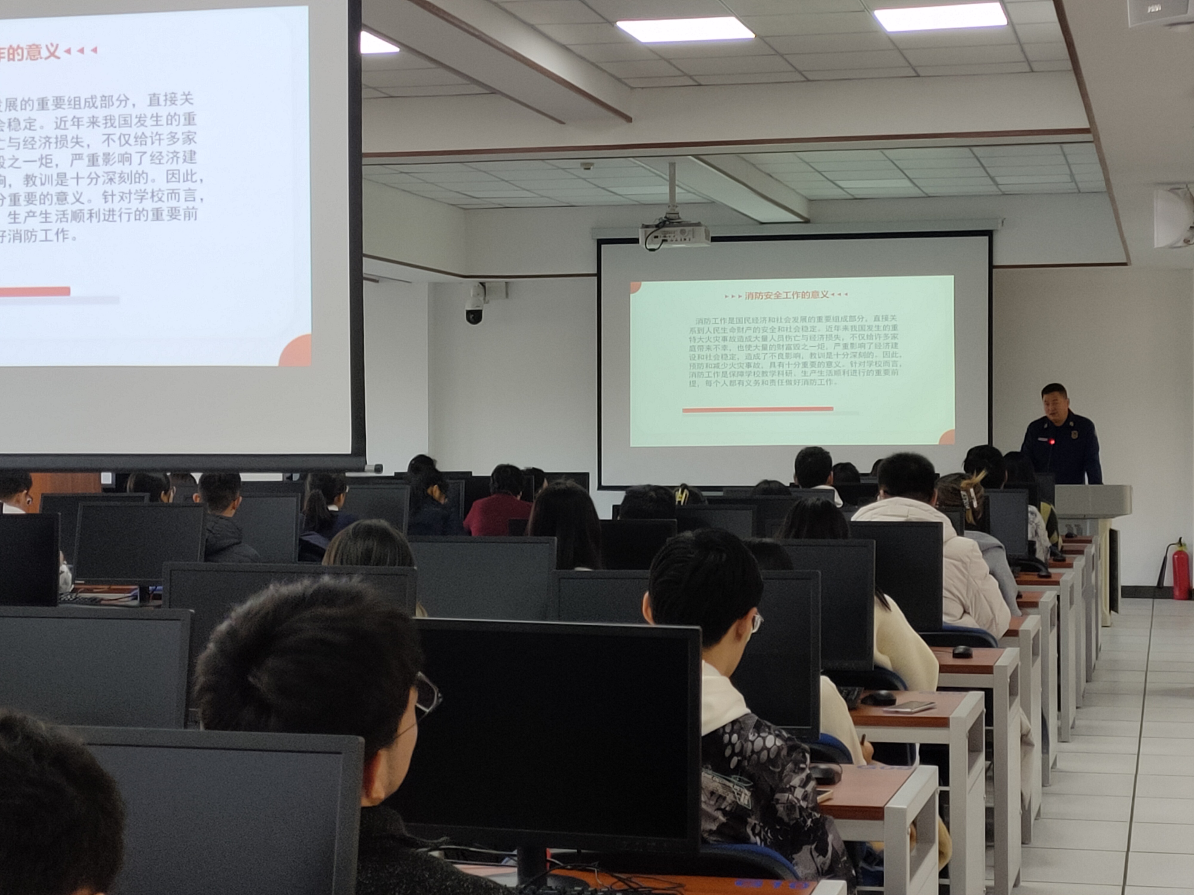 保卫处董立明老师先介绍了吉林大学消防安全管理规定,落实安全制度,强化安全管理,简明地讲述了基本的消防安全知识。然后,董老师以多起大型火灾事故为例,结合视频进行讲解,警示同学们注意不要做出违规行为,如人走不断电、在床上长时间充电等;普及火场的正确逃生办法,如湿毛巾捂住口鼻、禁止乘坐普通电梯等,同学们都受益匪浅。
