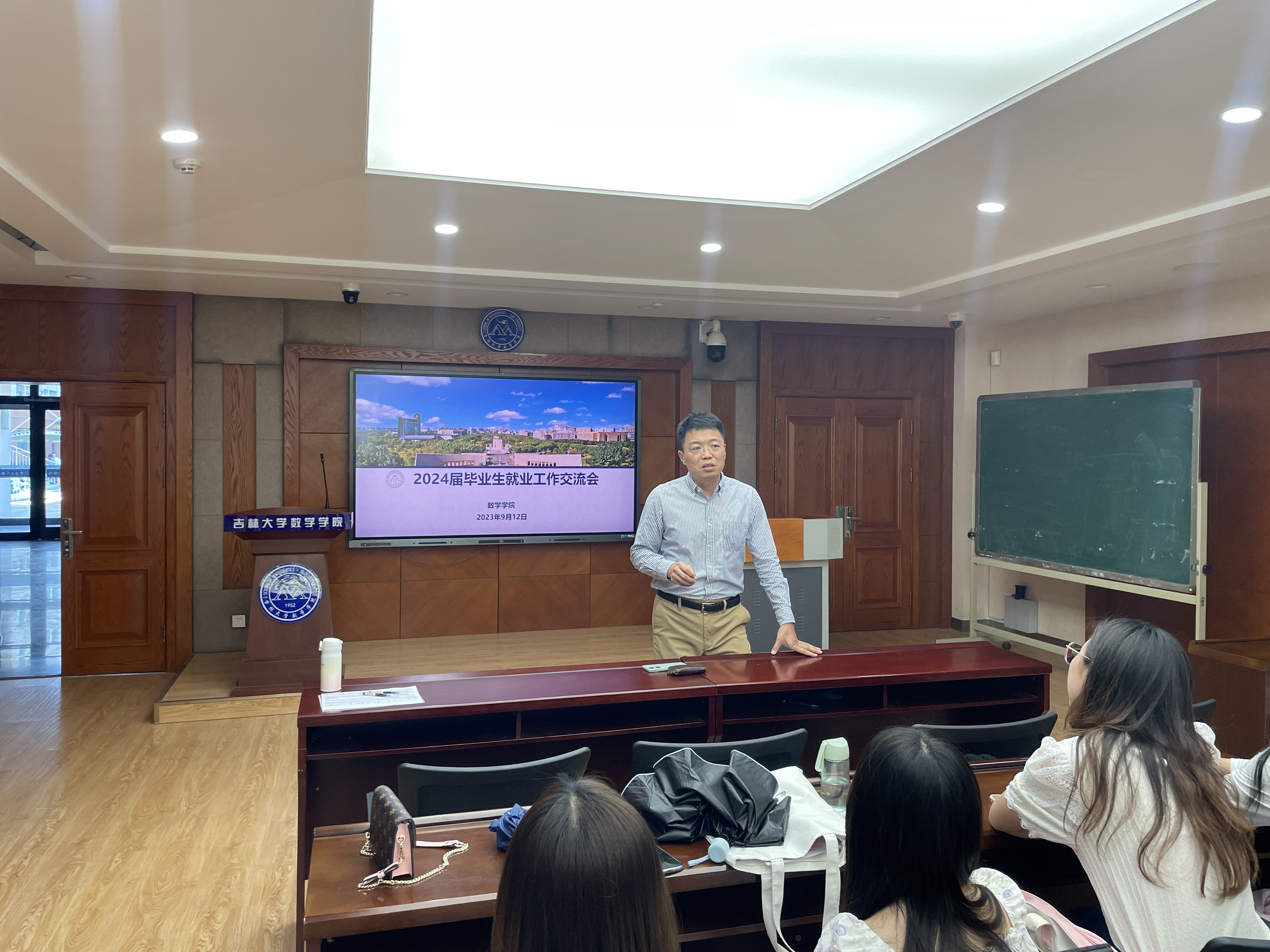 为积极应对当前高校毕业生面临的严峻就业挑战,把握毕业生求职的关键时机,积极提高毕业生就业动力,2024年9月12日,数学学院举办了2024届研究生毕业生就业工作交流会。本次会议由学院党委副书记陈续升主持,研究生辅导员张轶群、学院兼职就业辅导员张卓以及2024届研究生毕业生参会。