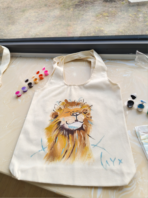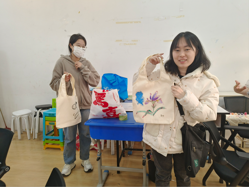 活动在下午2点准时开始,几十名来自不同学院的学生积极参与。在几个学院主办方的帮助下,学生们获得了空白帆布袋、颜料、画笔及马克笔等材料,并在帆布袋上进行了自由创作。他们根据自己的喜好设计独特的图案,使用不同颜色的颜料进行创作,最终制作出属于自己的个性帆布袋。