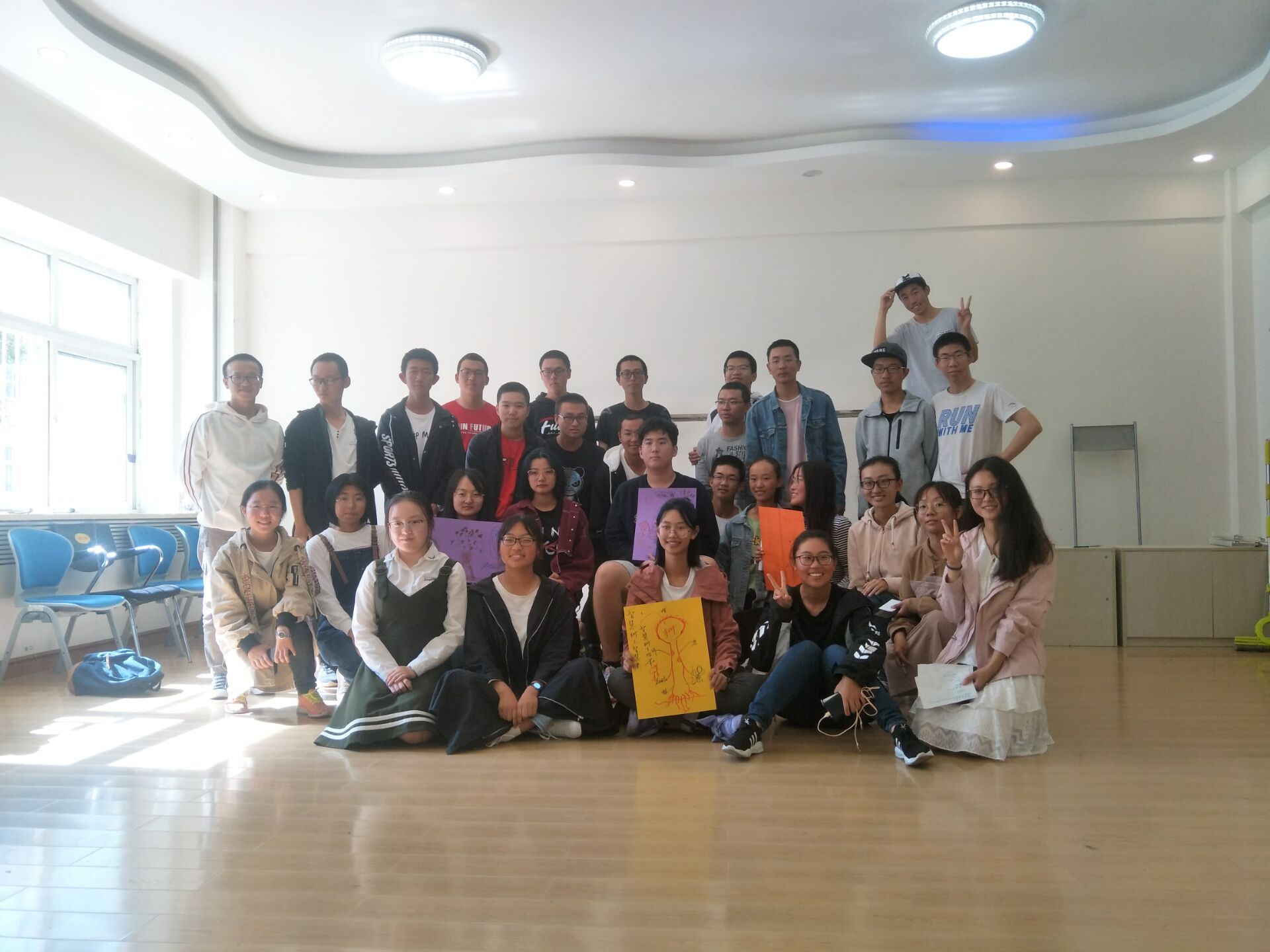 数学学院心理部组织各班同学于九月末至十月初在经信心理辅导室召开了一次以“我们是相亲相爱的一家人”为主题的心理班会,目的是让同学更快的适应大学生活,融入新的班级,明确自己大学的目标,实现个人价值。班会由各班心理委员主持,让大家在活动中互相了解,互相信任,增强班级凝聚力。