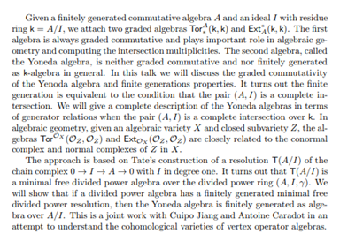 Title:Finite generations of Yoneda algebras for complete intersections
